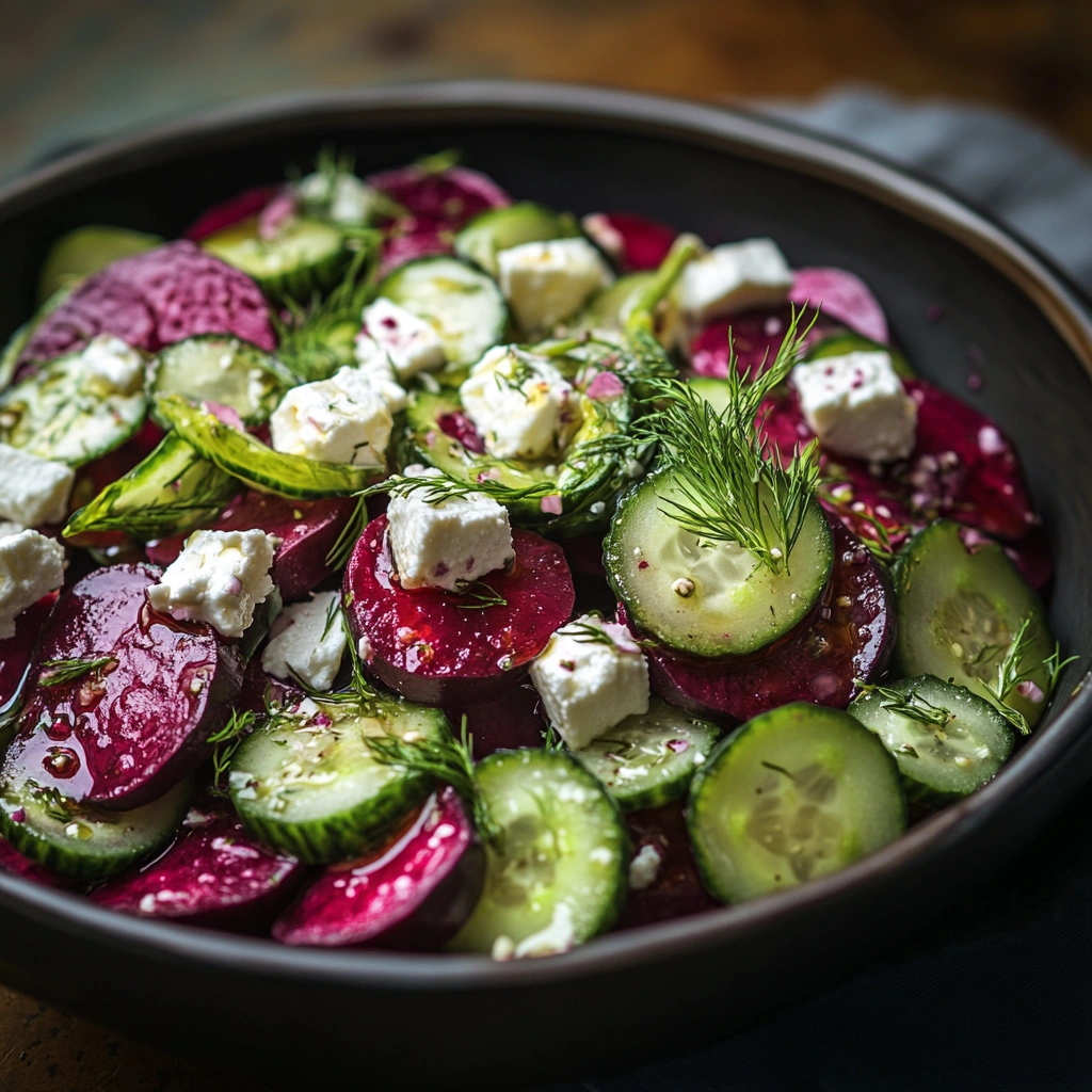 Beet salad with feta, cucumbers, and dill is a refreshing, vibrant dish that brings together earthy, creamy, tangy, and herbaceous flavors in one bowl. This salad is not only eye-catching with its jewel-toned beets and crumbled white feta, but it also offers a satisfying texture contrast—tender beets, crisp cucumbers, and creamy cheese, all elevated by the fresh aroma of dill.