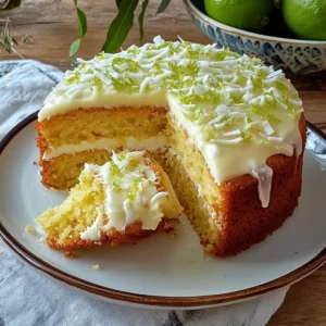 Once the cake has cooled and the syrup has settled in, sprinkle toasted coconut flakes and extra lime zest over the top. It adds texture, flavor, and a gorgeous finish.