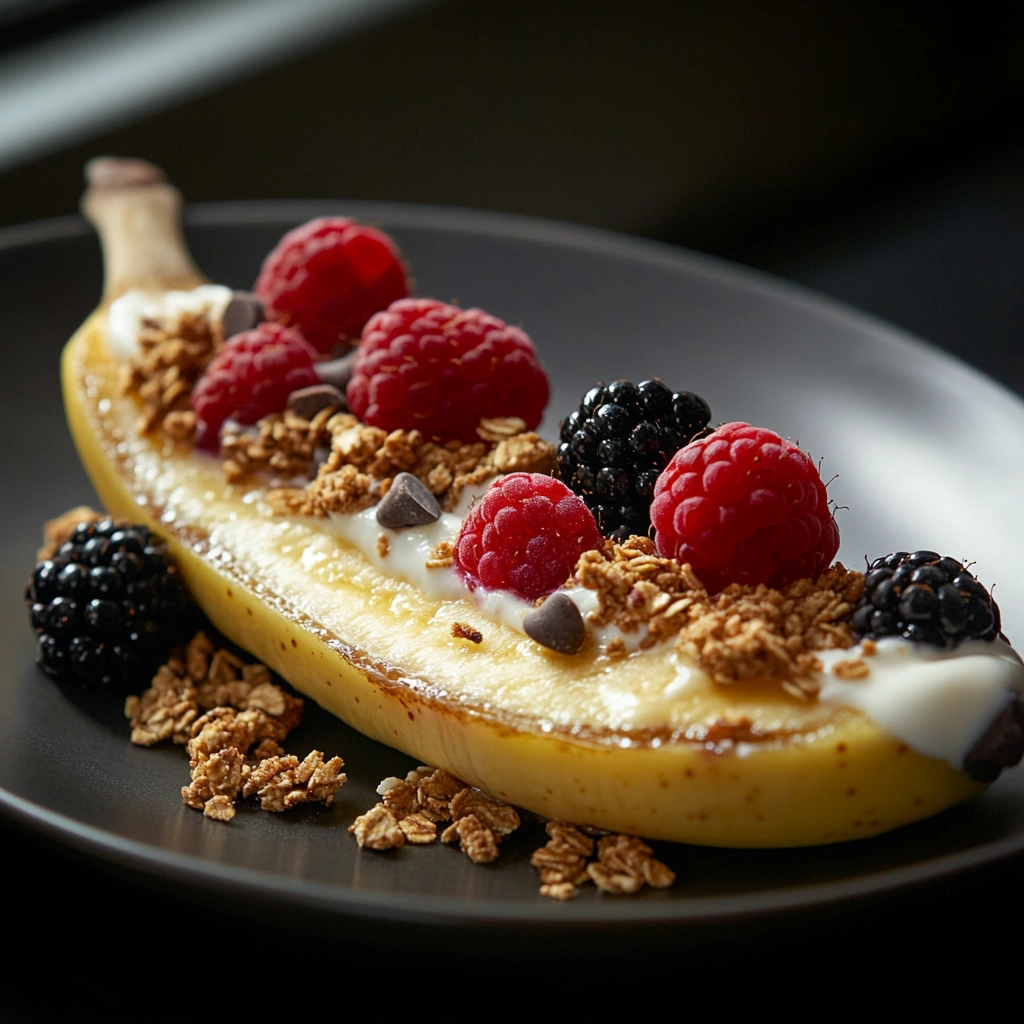 All the fun of a diner banana split—reimagined as a high-protein breakfast. Split a ripe banana lengthwise and spoon in Greek yogurt whipped with a little vanilla protein powder. Top with strawberries, blueberries, and pineapple tidbits, then finish with toasted nuts, coconut, and a drizzle of warm peanut butter “sauce.” It’s colorful, kid-friendly, and surprisingly satiating thanks to the yogurt + nut combo. Want it lower sugar? Choose just one fruit and skip the drizzle, or swap in sugar-free chocolate syrup. Build it in a shallow bowl to catch every bite, and eat immediately while the banana is cool and the toppings are crunchy.