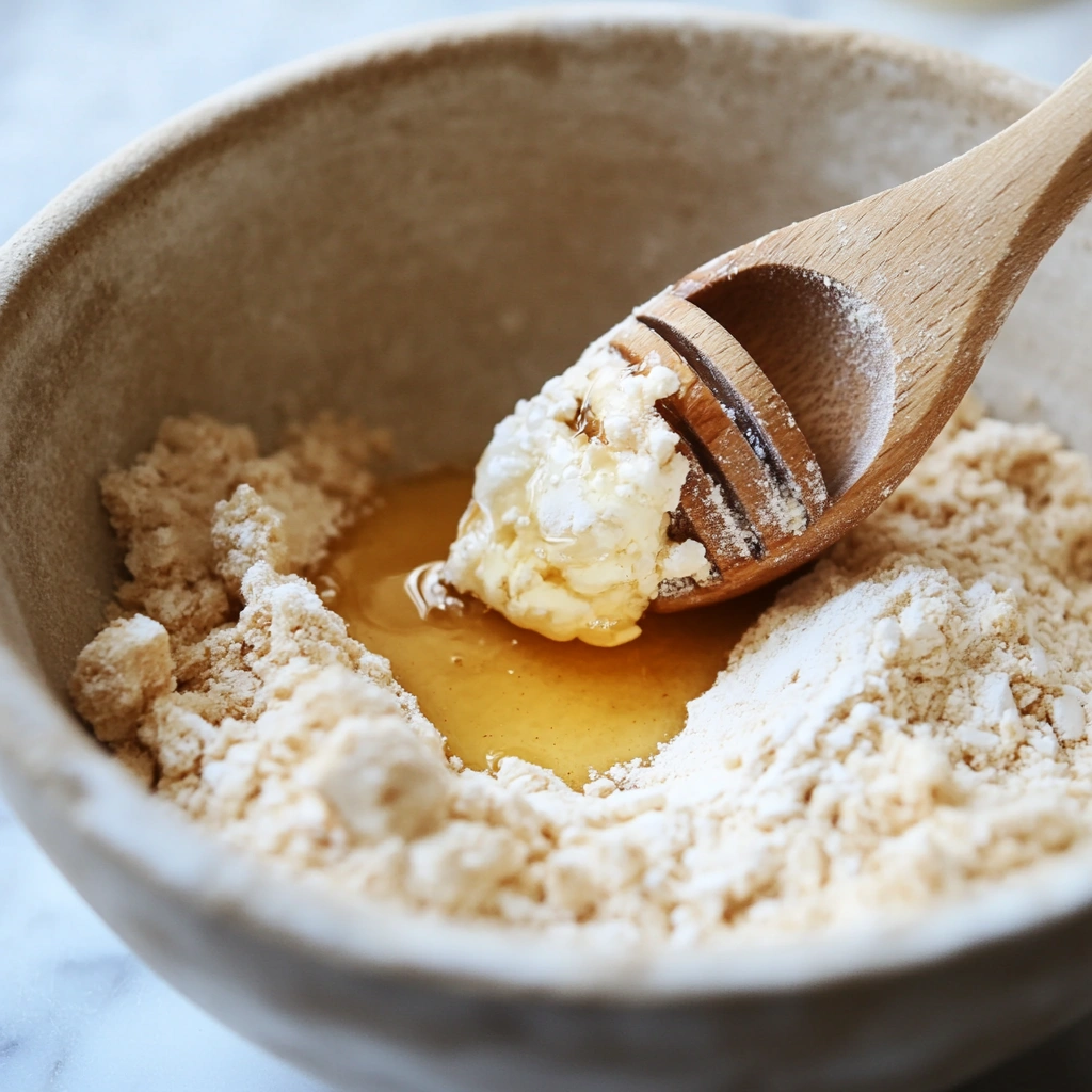 In a smaller bowl, whisk together honey (or maple syrup), melted coconut oil, and vanilla extract. - Combine Wet and Dry Ingredients: