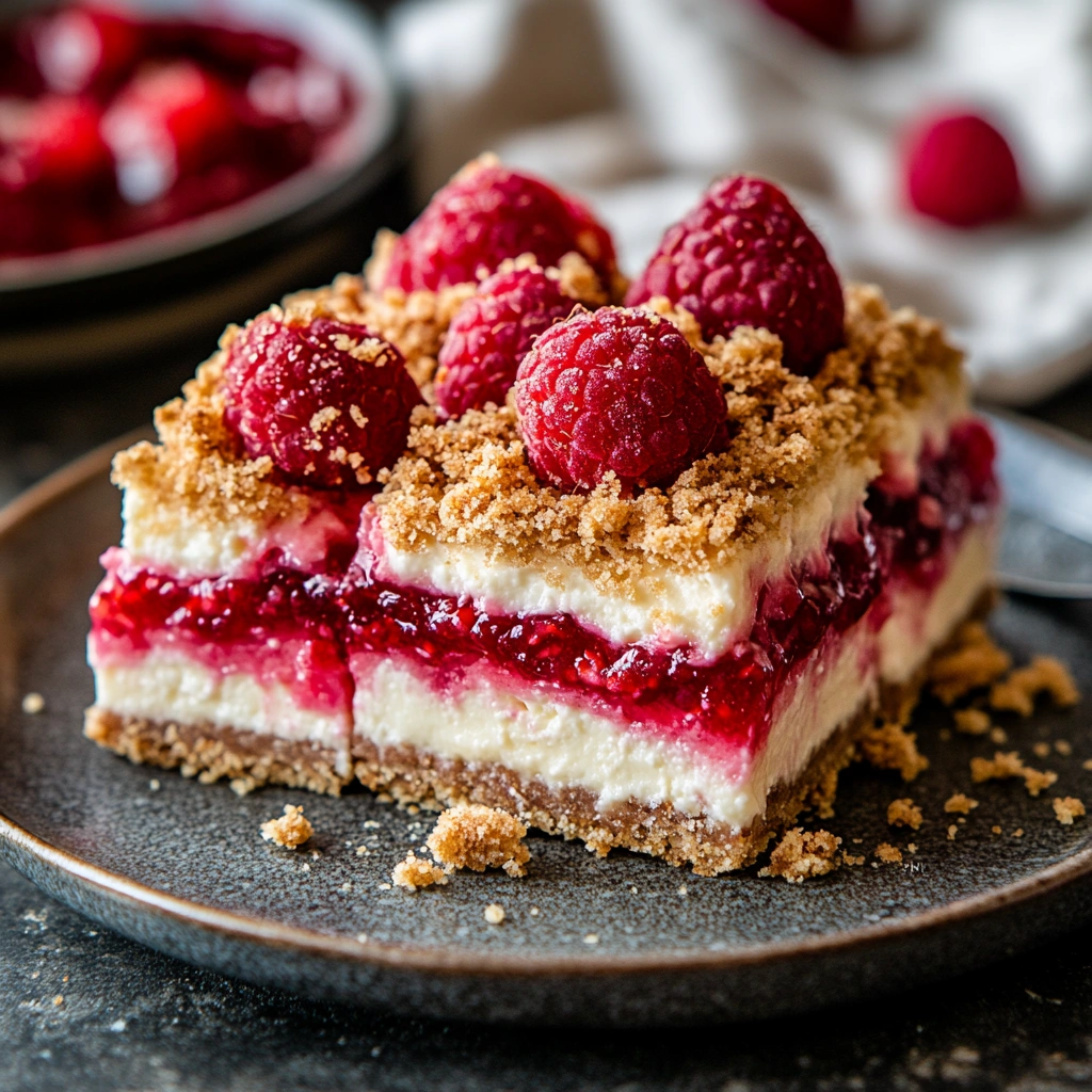 These squares store beautifully and can be prepared in advance to streamline entertaining. After chilling, cover the pan tightly with plastic wrap and refrigerate for up to 4 days; the flavors will deepen over time. For longer storage, slice the bars first, then arrange them in a single layer on a parchment-lined baking sheet. Freeze uncovered for 1 hour, then transfer to an airtight container with wax-paper layers between squares; freeze for up to 3 months. To serve, thaw refrigerated squares for 30 minutes at room temperature or frozen squares in the fridge overnight. If desired, refresh the appearance by dusting with powdered sugar or re-piping whipped cream just before plating. Preparing the crust, filling, and compote a day ahead can reduce hands-on time on the event day: bake, cool, and chill your cheesecake the night before to ensure a stress-free serving experience.