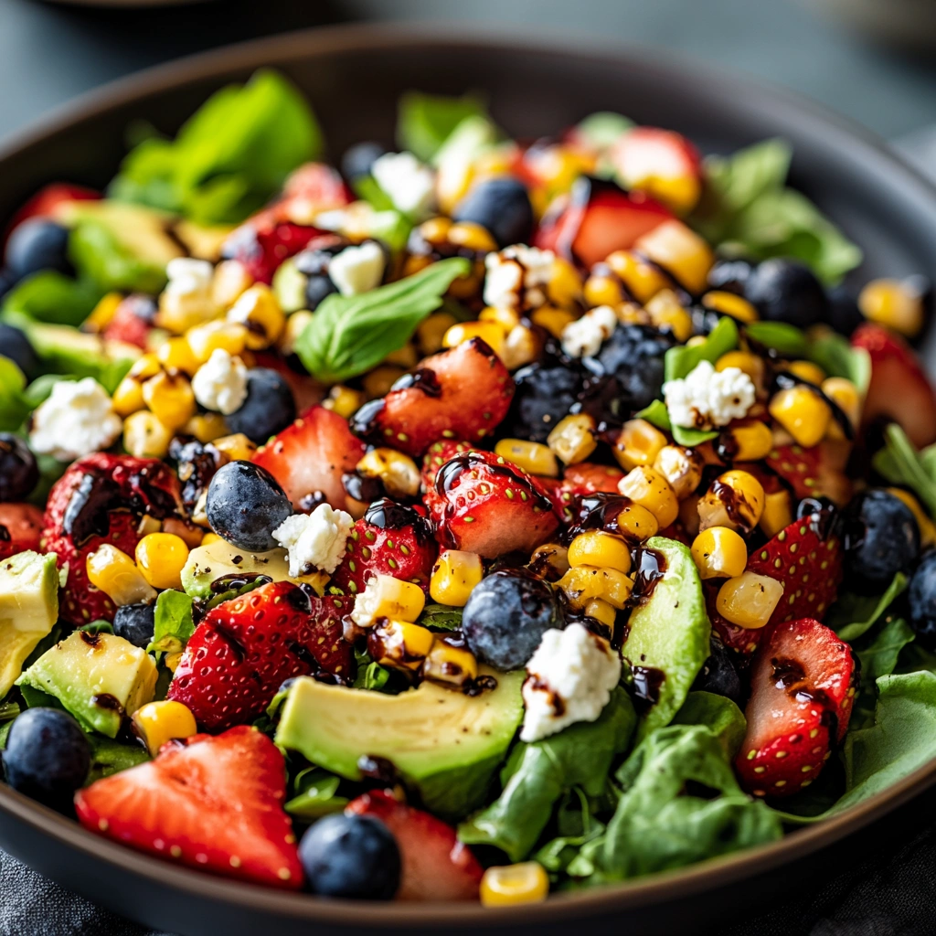 The Strawberry Avocado Corn Salad is a light, refreshing, and nutrient-packed dish that combines the sweetness of strawberries, the creamy richness of avocado, and the crunch of fresh corn. Tossed with crisp greens, tangy cheese, and a flavorful dressing, this salad is perfect for summer gatherings, picnics, BBQs, or a healthy weekday meal. It’s incredibly versatile, can be customized with proteins or grains, and is ready in just 15 minutes!
