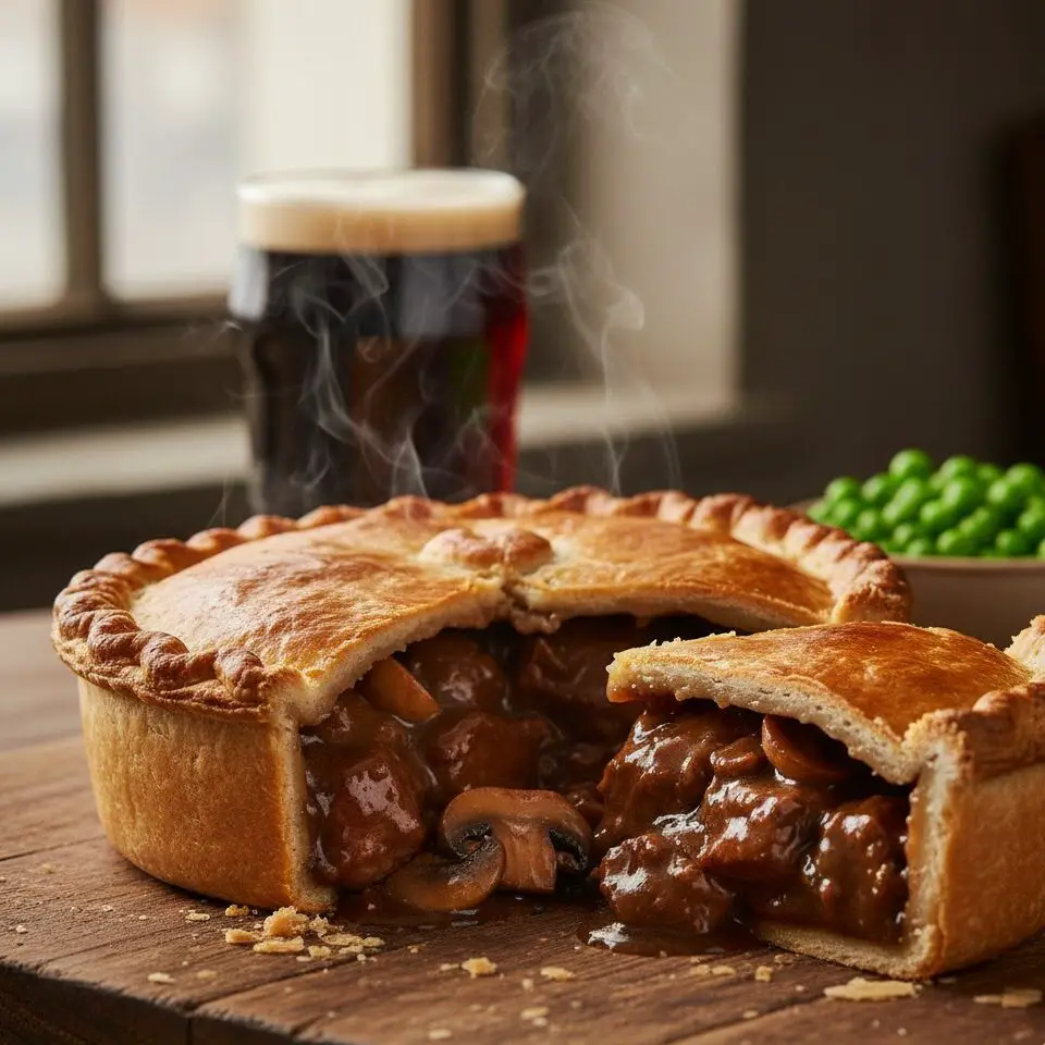 A proper pie commands the entirety of a plate. Serve a generous, steaming wedge alongside buttery, creamy mashed potatoes and vibrant green peas or minted cabbage. You should not require extra gravy, but if you do, pour a jug of hot beef stock directly over the top. A pint of bitter or a glass of robust red wine makes the perfect accompaniment.